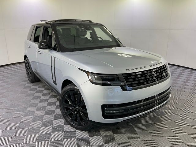 Silver 2025 Land Rover Range Rover SE AWD ZF 8-Speed Automatic 4.4L V8 Twin Turbocharged Ebony Leather.